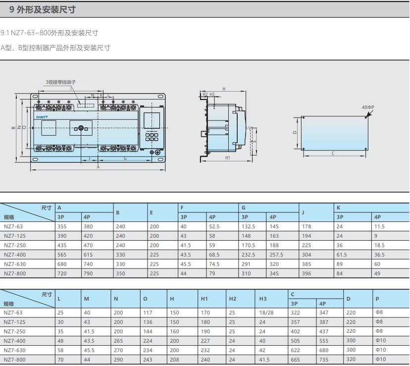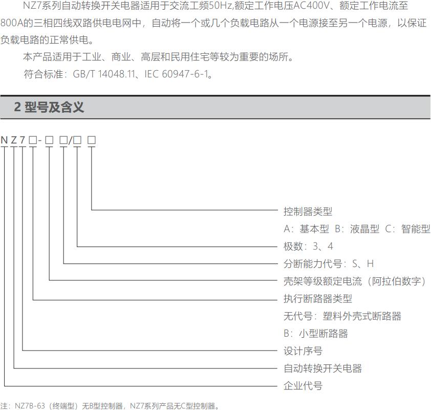 Zhengtai NZ7 automatic transfer switch NZ7-250H 4A 3A 400S 630S 630S power switch