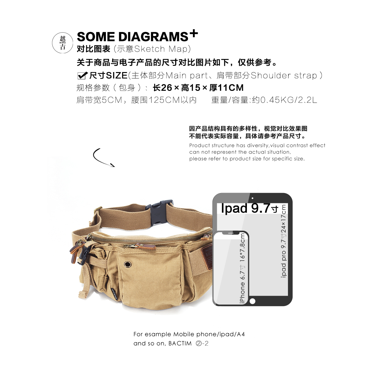 The more ancient pockets Canvas Men's Chest Bag Outdoor Leisure Multifunction Tide Diagonal Satchel single shoulder bag Men's pocket