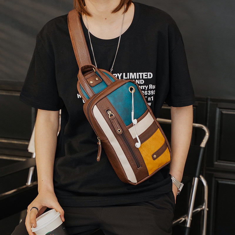 New Fashion Casual Retro Men's Chest Bag Han Edition Men's Bag Vertical SHOULDER BAG SINGLE SHOULDER SLOPED SATCHEL BAG BACK
