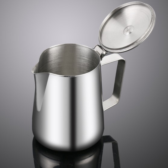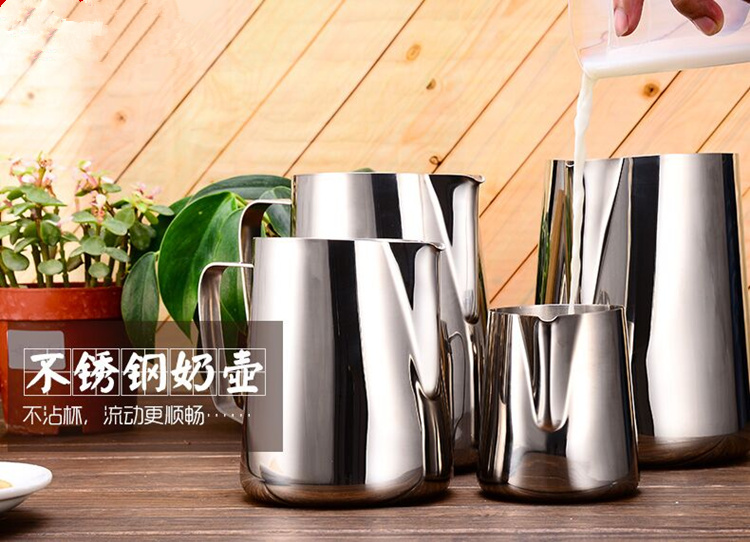 304 stainless steel pointed mouth pull flower cup with lid with scale measuring cup Coffee pull-in vat to make milk bubble cup coffee maker