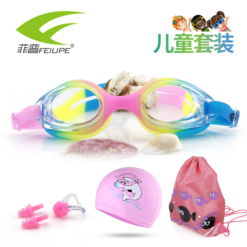 Fip Children's Swimming Equipment Supplies Children's Swimming Cap Swimming Goggles Set Girls Glasses Full Set Boys Waterproof and Anti-Fog