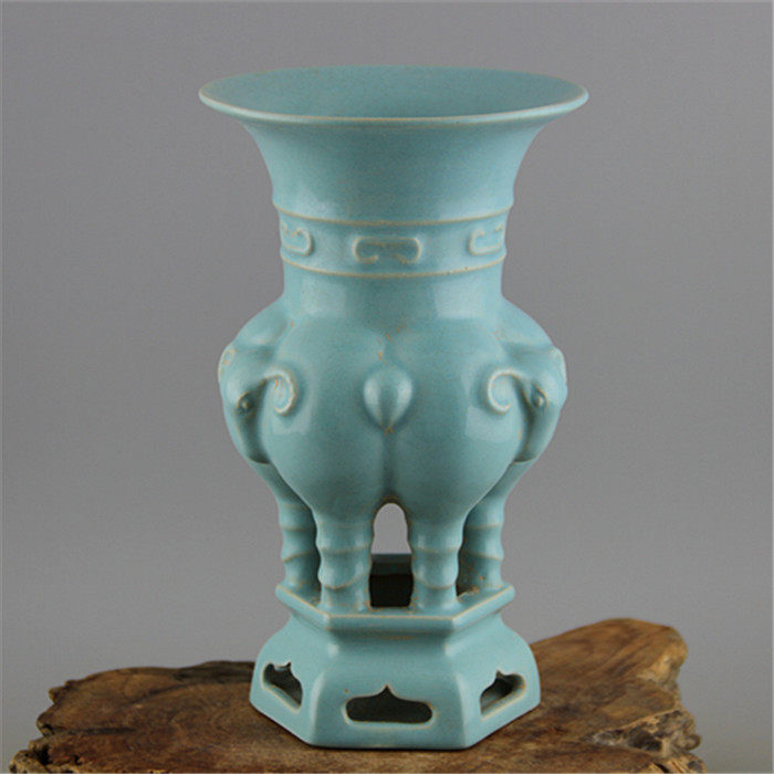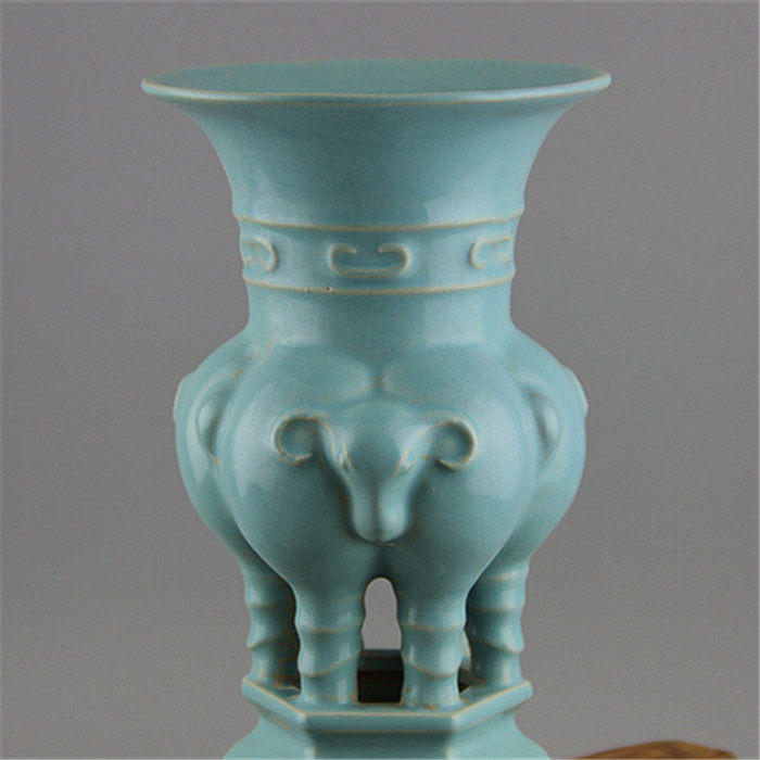 Song Dynasty Ru kiln sky blue glaze carving Sanyangzun unearthed old goods antique porcelain antique antique collection retro ornaments