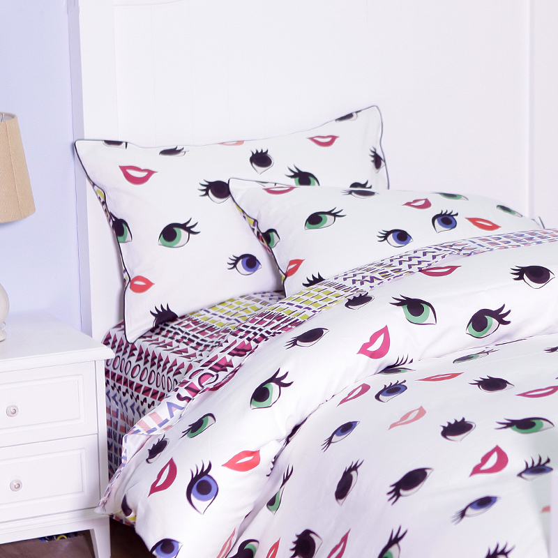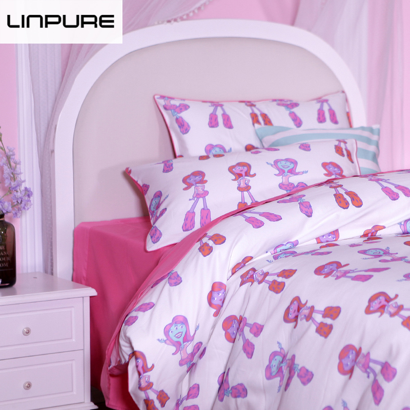 Blue Platinum Children's Fun Series Four-piece Cotton Bedding Children's Cartoon Satin Spring and Summer Set