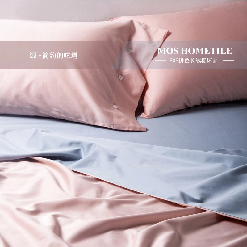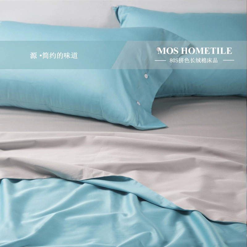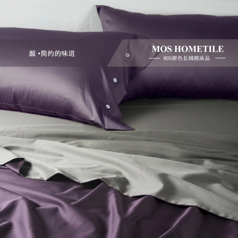 Foreign trade export 80S satin pure color Egyptian long-staple cotton four-piece set five-star hotel simple color matching bedding