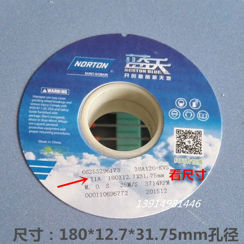 Norton blue sky grinding wheel NORTBN small surface grinding machine grinding wheel 180 * 12 7 * 31 75 ceramic grinding wheel white corundum