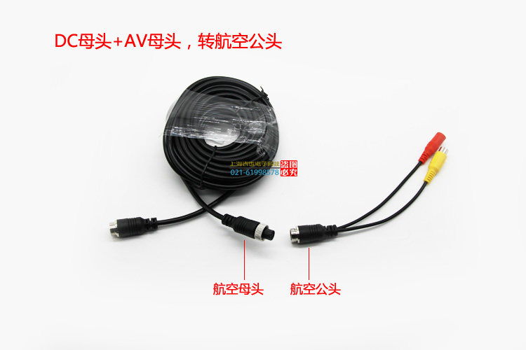 DC AV female head to aviation male head RCA lotus head display to aviation head reversing monitoring lens conversion line