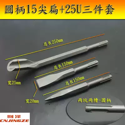 Electric pick chisel head Long hexagonal rotary hammer drill round square handle pointed flat chisel Impact drill head U shovel pick drill set