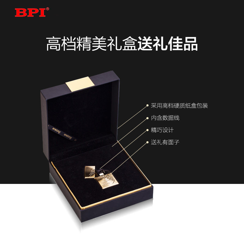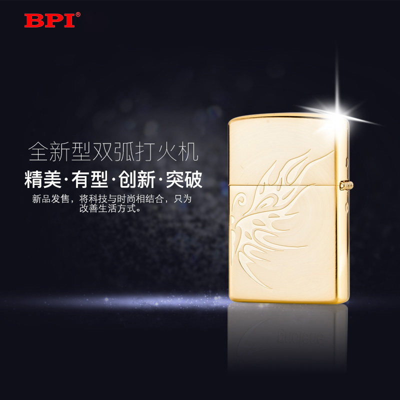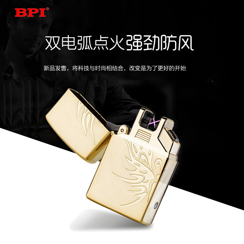 BPI Double Arc Lighter Non Oil Non Gas Windproof Electroplating Usb Charging Lighter 24K Gold Plated Men Gift
