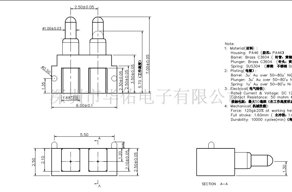 pogopin spring thimble custom antenna thimble spring needle 2P-2 5-7 0H battery needle mold test