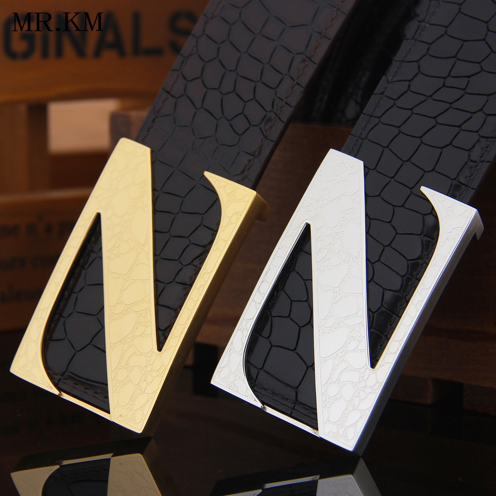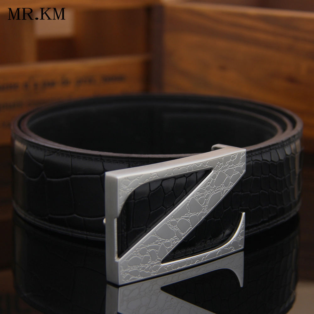 MR KM fashion knife grain leather stainless steel Z buckle belt men's belt youth trend leisure