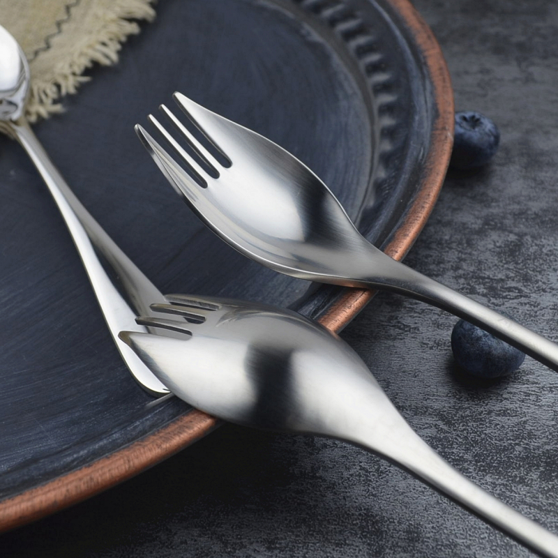 304 Stainless Steel Salad Fork Spoon Integrated Dual-use Spoon Fork Schlufork Child Fruit Fork Camping Spoon Fork Watermelon Spoon
