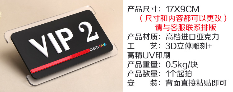 Upscale Hotel Dining Room room VIPs Box Cards Acrylic Doorplate Numbers can be replaced with custom made
