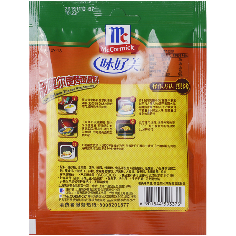 McCormick New Orleans Grilled Wings seasoning 35g fried chicken grilled chicken wings marinade Grilled meat seasoning