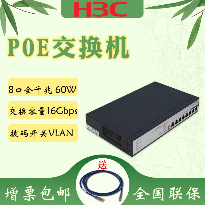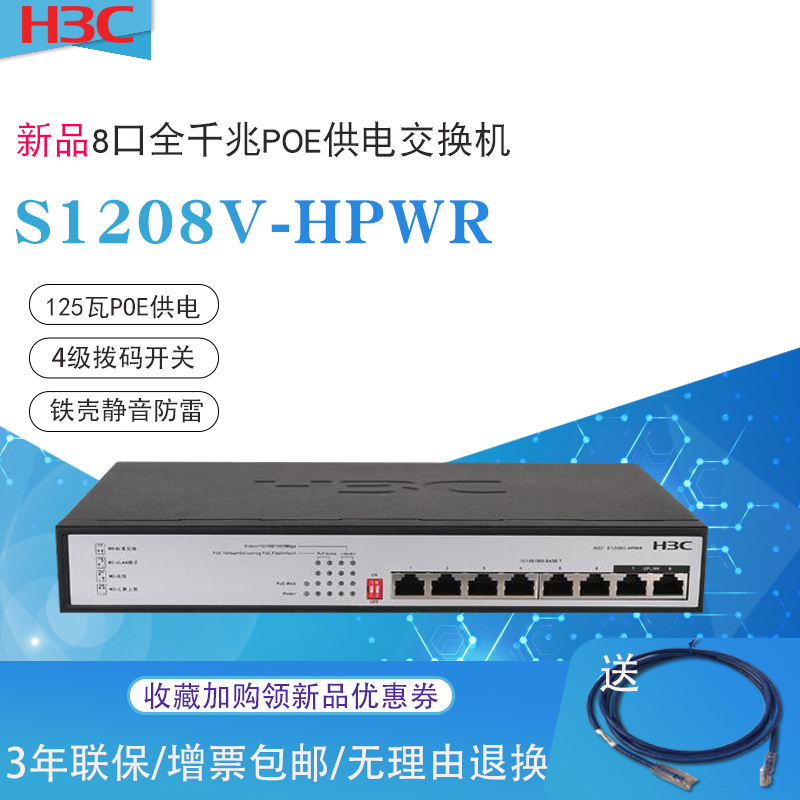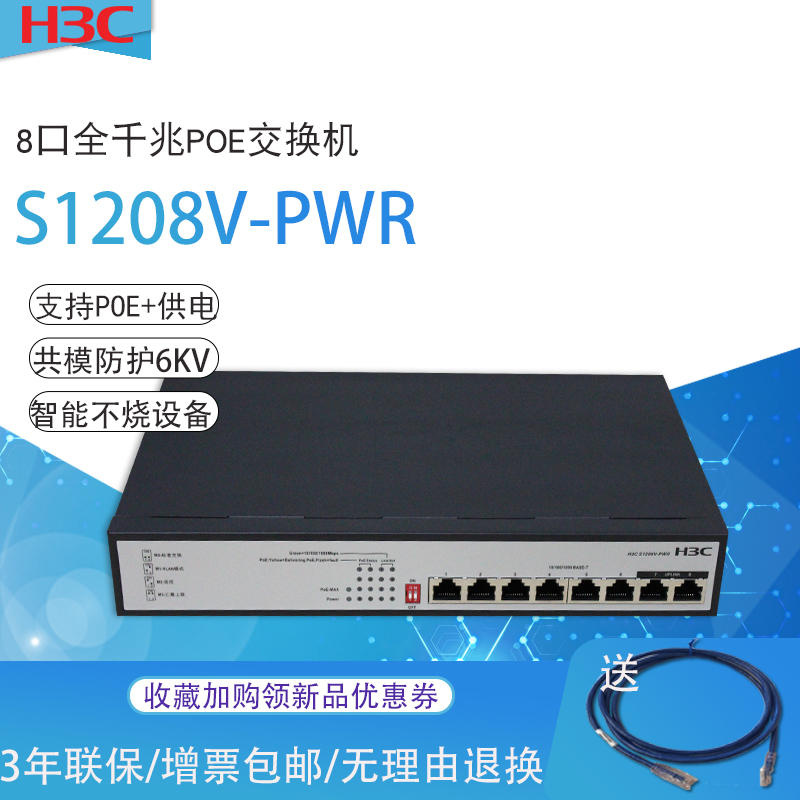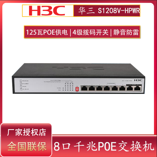 Spot H3C China 3-8 mouth one thousand trillion POE power supply switch S1208V-PWR S1208V-HPWR iron shell mute lightning protection 48V without burning equipment instead of S1