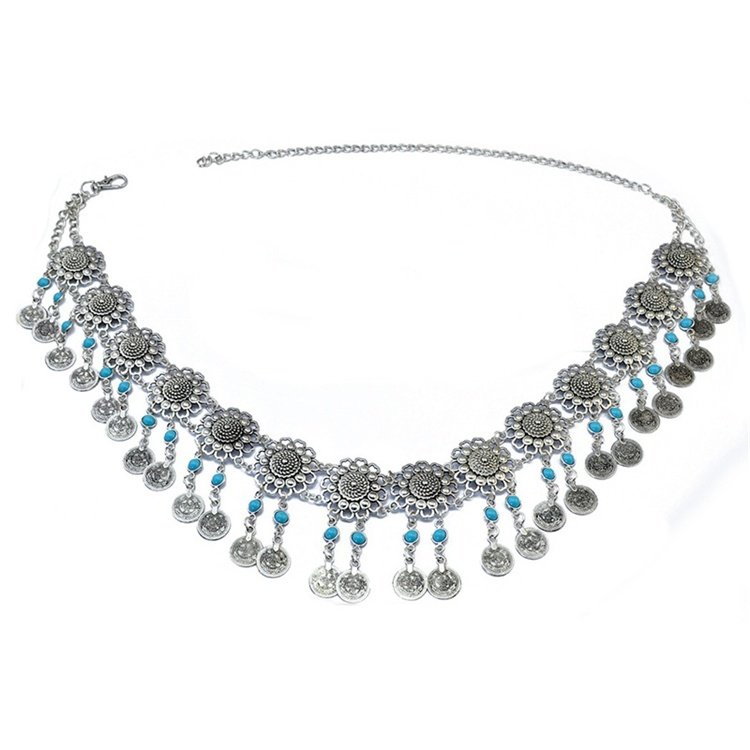 New National Wind performance belt rhinestone metal Sunflower tassel dance coin beginner belly dance waist chain