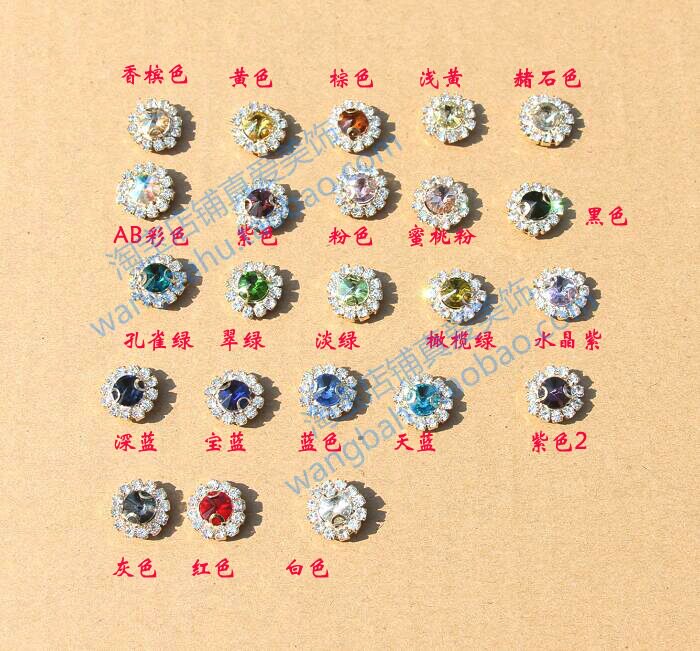 Champagne, one yellow, one brown, one light yellow, one ochre, one AB color, one purple, one pink, one peach pink, one black, one malachite green, one emerald green, one light green, one olive