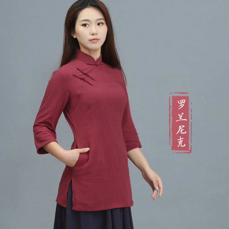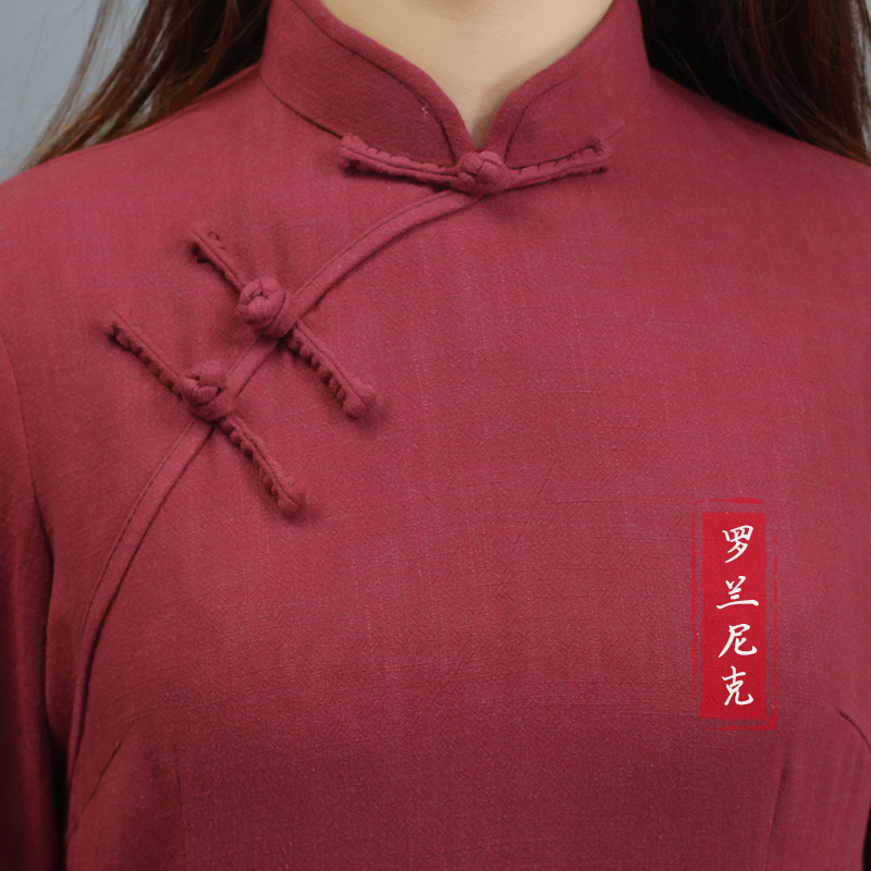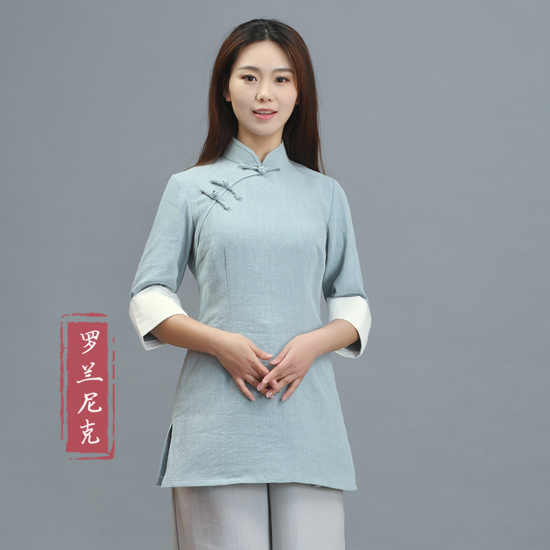 Chinese style women's clothing Chinese retro Cheongsam top plate buckle slim Tang dress Tea art improvement Hanfu women's traditional culture