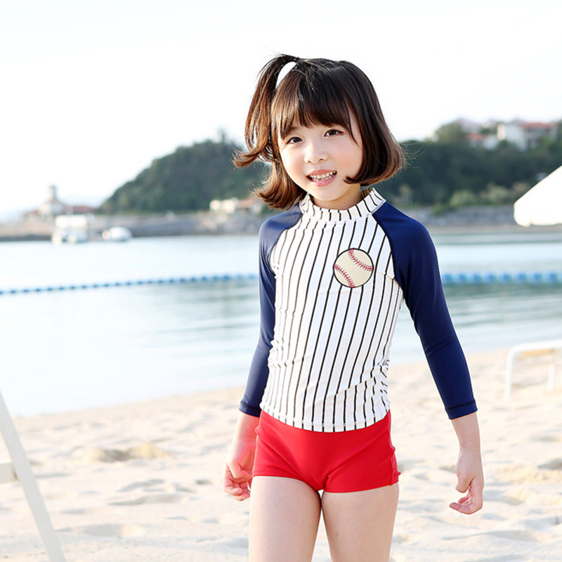 2-15-year-old children's swimsuit two-piece quick-drying long sleeve sunscreen female Zhongda children's hot spring Korean girl swimsuit