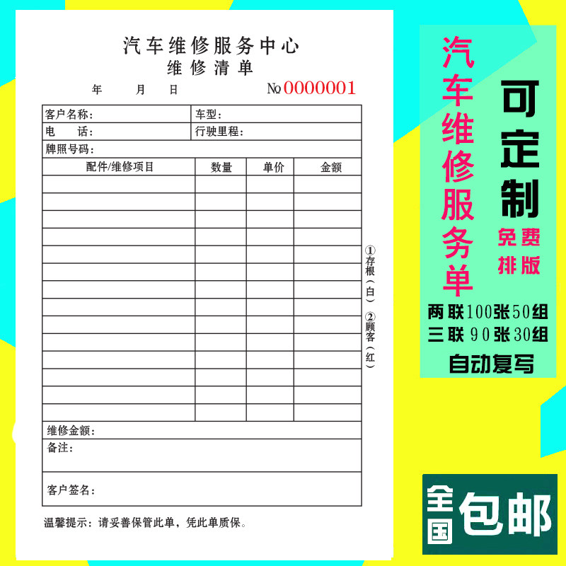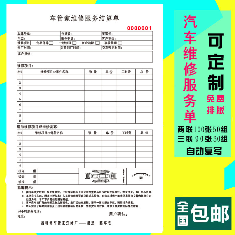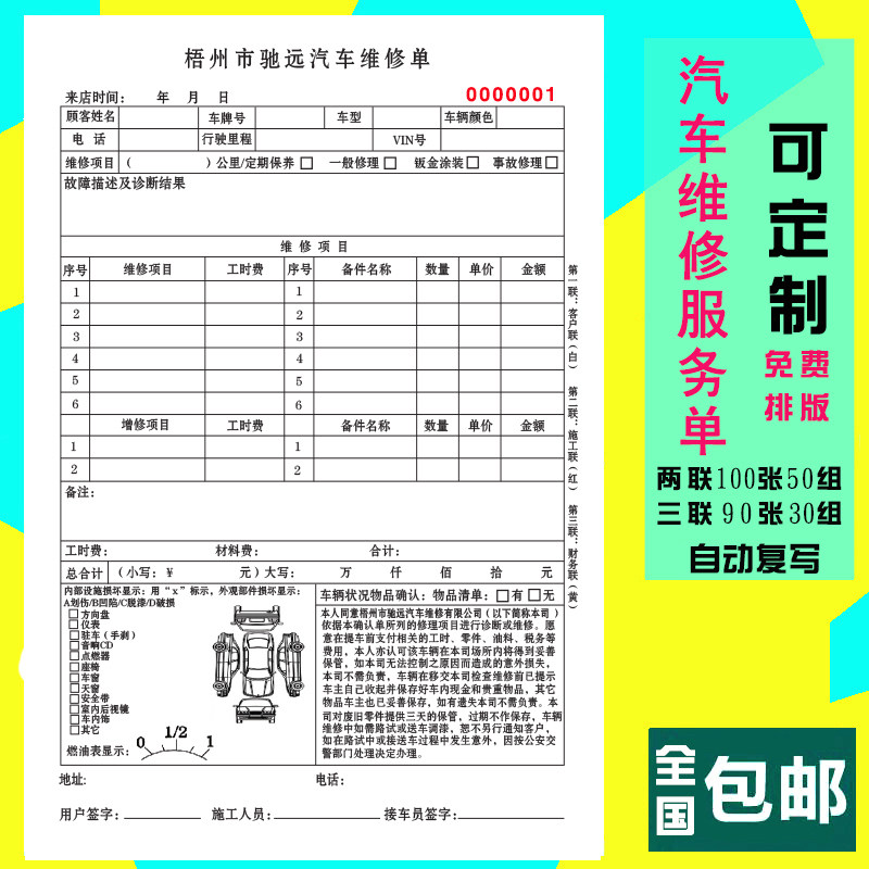 Custom car repair list Repair shop Pick-up single vehicle repair construction order Pick-up contract dispatch service order