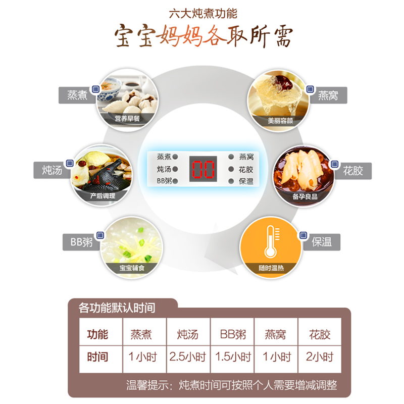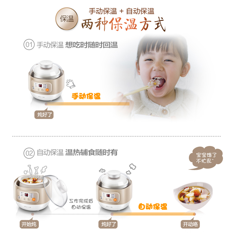 Bear DDZ-A08D1 Electric Stew Pot Steam Stew Double All White Porcelain Mini Baby Porridge Cooker Electric Stew Pot