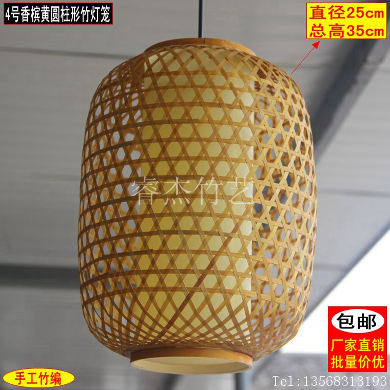 Pure handmade cylindrical bamboo art hanging lamp Ming and Qing Classic Bamboo Weaving Lantern Dining Hall Teahouse Hotel Courtyard lamp with lamps