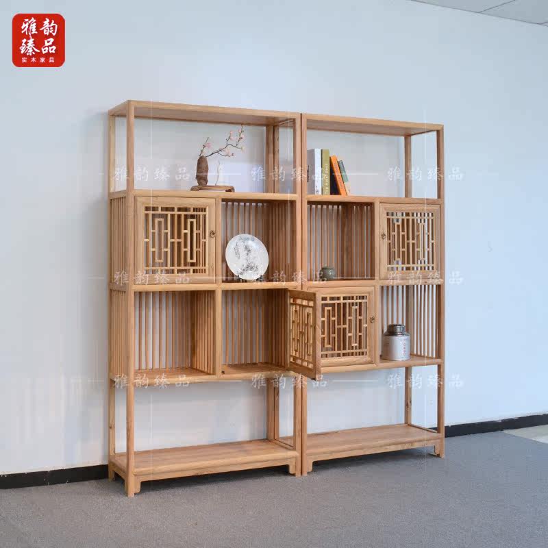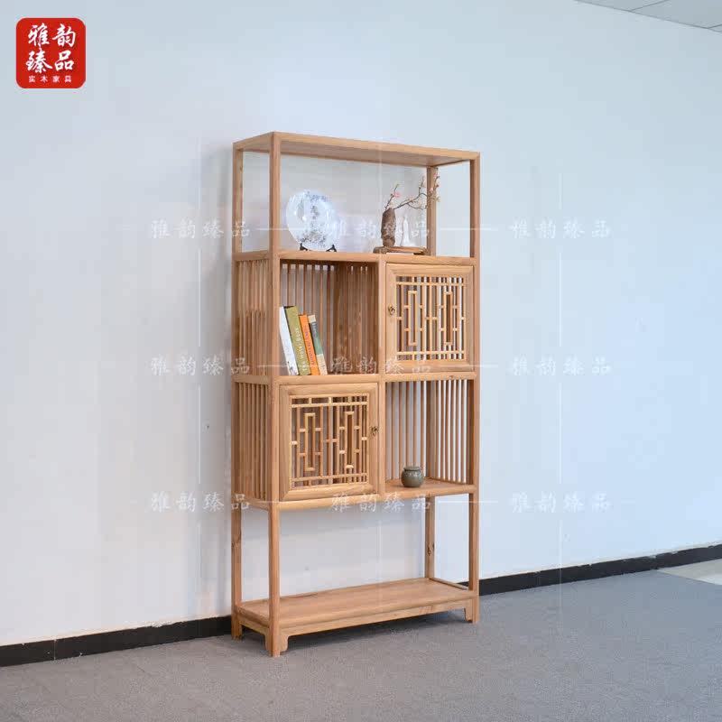 Old elm Chinese-style paint-free Bogu bookshelf antique bookcase combination simple solid wood storage storage display cabinet