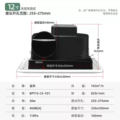Jinling exhaust fan 12 inch ceiling pipe ventilation fan ceiling powerful silent exhaust fan BPT15-23-1D1