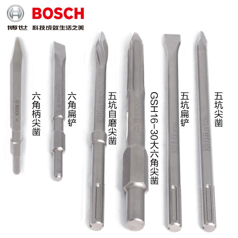 Bosch Bosch Five Pit Chisel Flat Chipping Self-Grinding Tip Chipping Four Pit Tips Flat Chipping Tips Hexagon Sharp Chisel