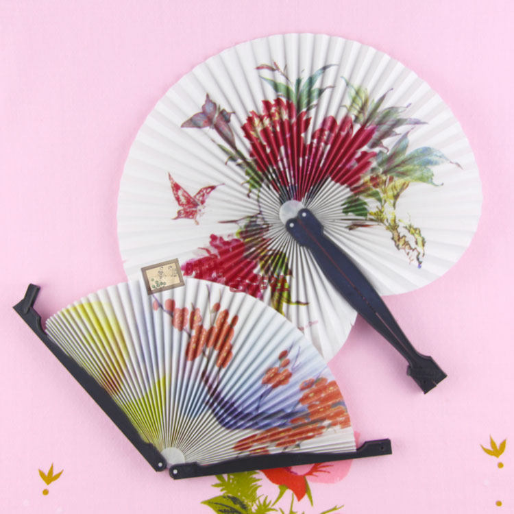 Plastic handle round fan 1 with pattern random whole box price (a total of 12 round fans)