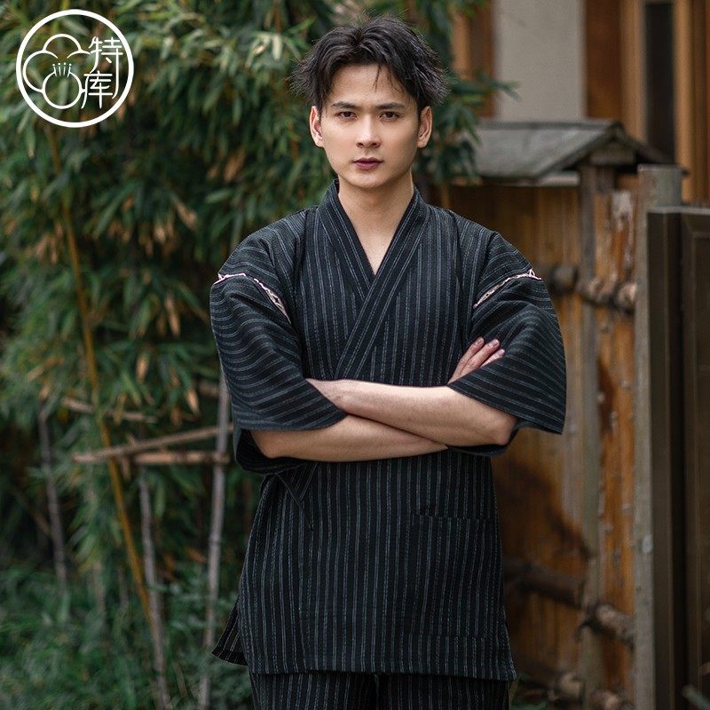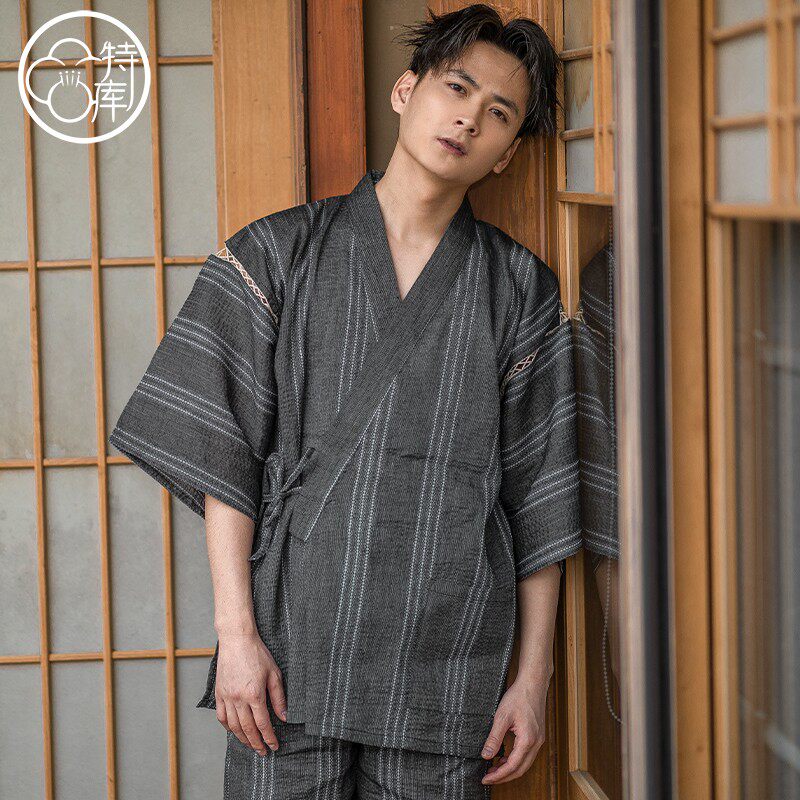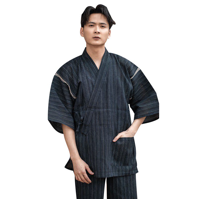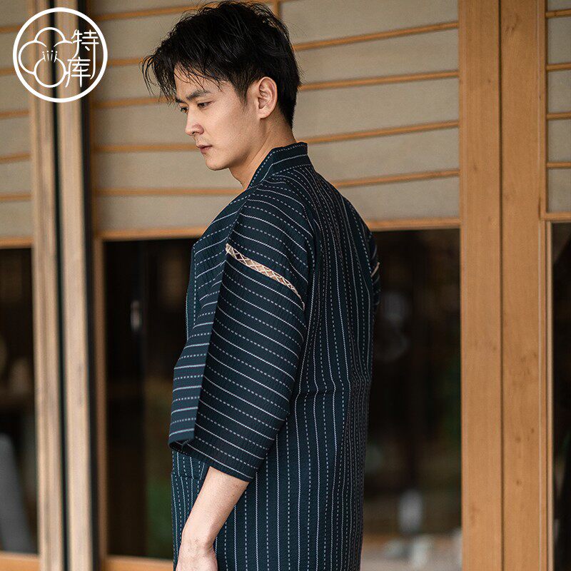 New Japanese-style men's home jinping summer Japanese and wind tethered cotton yukata sweat steaming set pajamas thin section