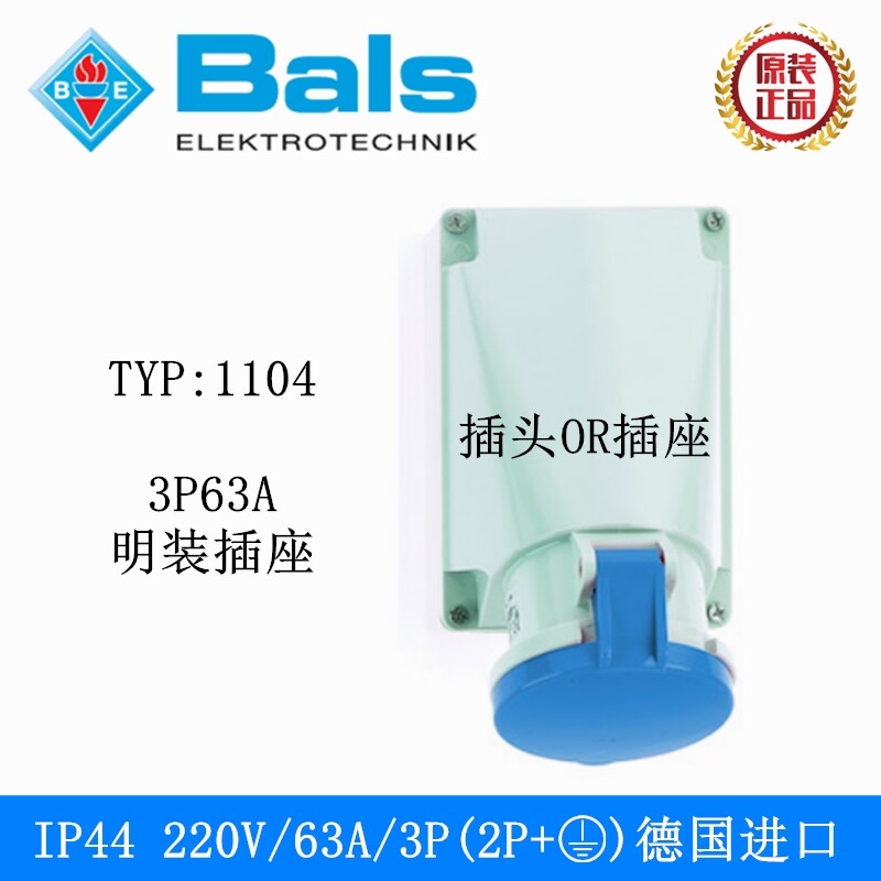 Original German BALS BALS industrial waterproof plug 3P4P5P63A surface mount seat TYP1104 1127 1124