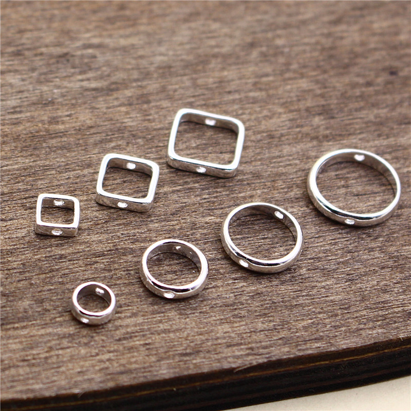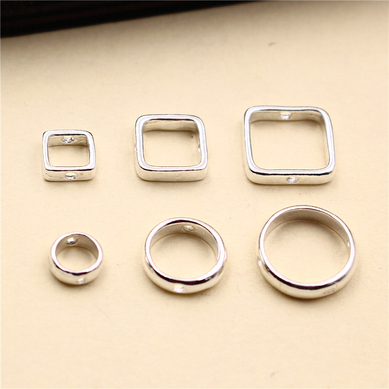 925 Pure Silver DIY Handmade Strings Beads Handmade Accessories Round Square Hollowed-out Cirque beads intermediate able to put beads