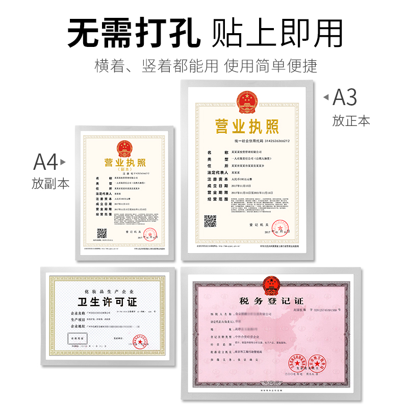Weyu new edition of the 35th certificate of the industrial and commercial business license protection set A3 copy of magnetic wall plate soft shelf enterprise excellent employee honor certificate honorary display of the wall shopping mall