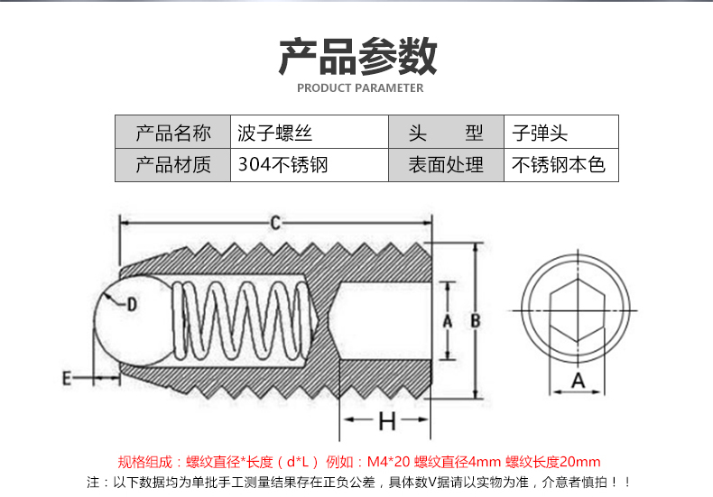 (M3M4M5M6) 304 stainless steel steel ball tight fixed wave bead screw positioning Everest spring ball head plunger