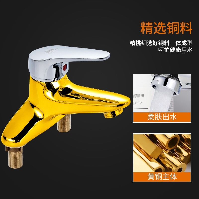 Washbasin faucet Hot and cold copper double hole basin faucet Bathroom three hole bathroom basin sink faucet