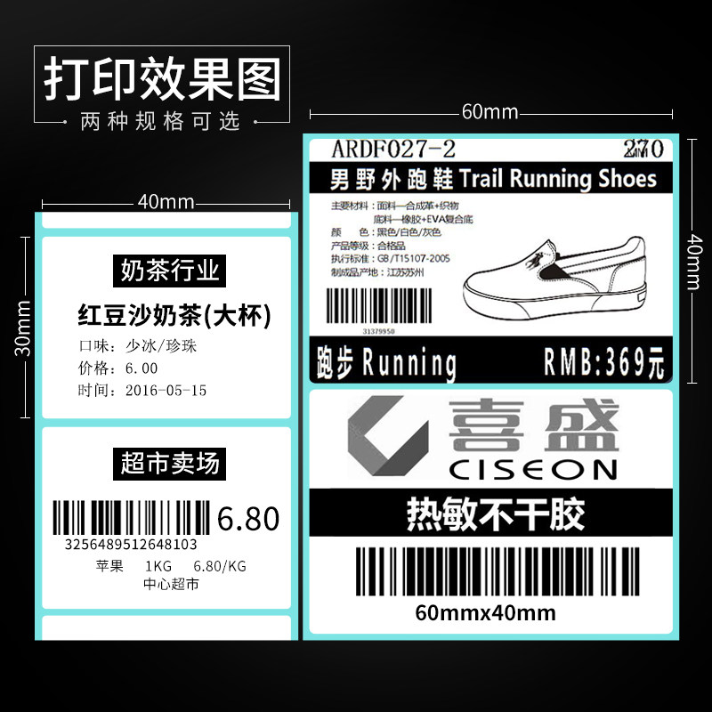 Thermal adhesive label note code photocopy paper supermarket price tag electronic scale sticker 40 * 30 60 * 40