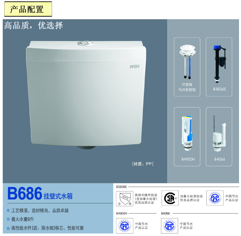 WDI Squatting Pan Squat Tank Suit Energy Saving Tank Double Press Energy Saving Silent Squatting Tank