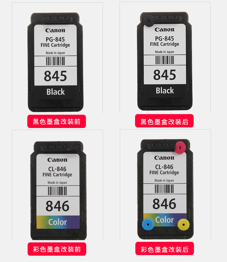 Original 845 Black Upgrade Ink + 1 Bottle Ink - 1000 Pages Original 846 Color Upgrade Ink + 3 Bottles of Ink - 1200 Pages Original 845 + 846 Upgrade Ink + 4 Bottles of Ink - 2200 Pages Original 845 Black Standard - 180 Pages Original 846 Color Standard - 180 Pages Original 845 +846 Standard Set - 360 Pages Original 845XL Black Large Capacity - 300 Pages Original 846XL Color Large Capacity - 300 Pages Original 845XL Color Large Capacity - 300 Pages Original 845XL+ 846XL Large Capacity Set - 600 pages Original - Not applicable for non-continental machines (do not shoot this item)