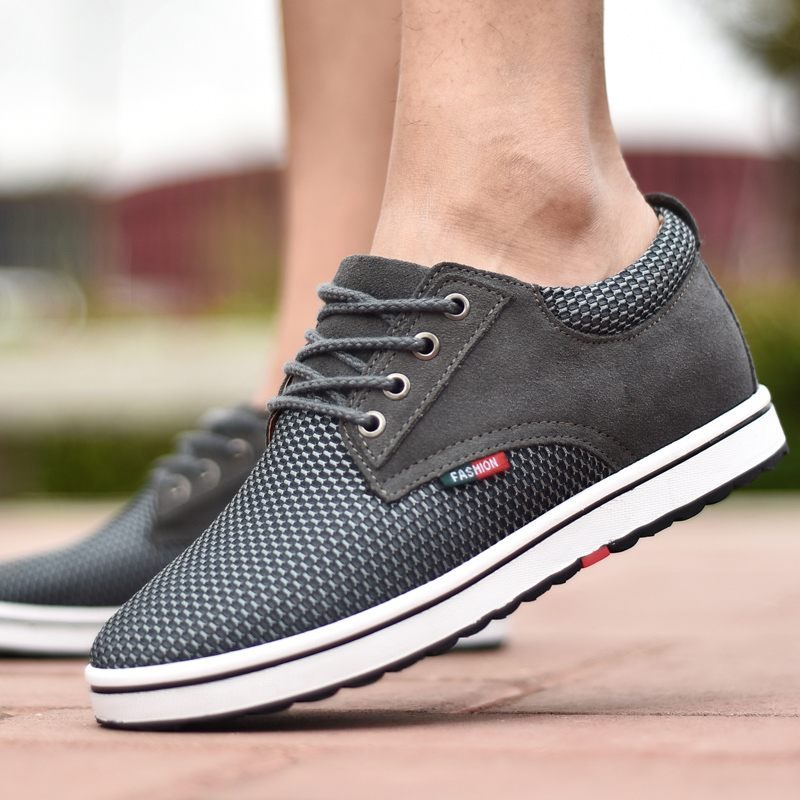 Invisible Inner Heightening Board Shoes Men Casual Shoes Lace Spring Fall Heightening Genuine Leather Board Shoes Men's Net Face Casual Shoes-Taobao