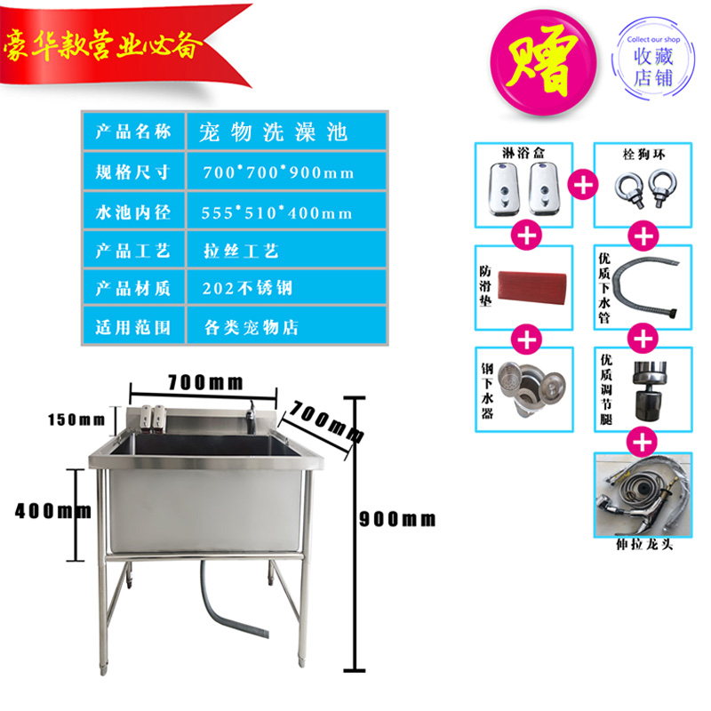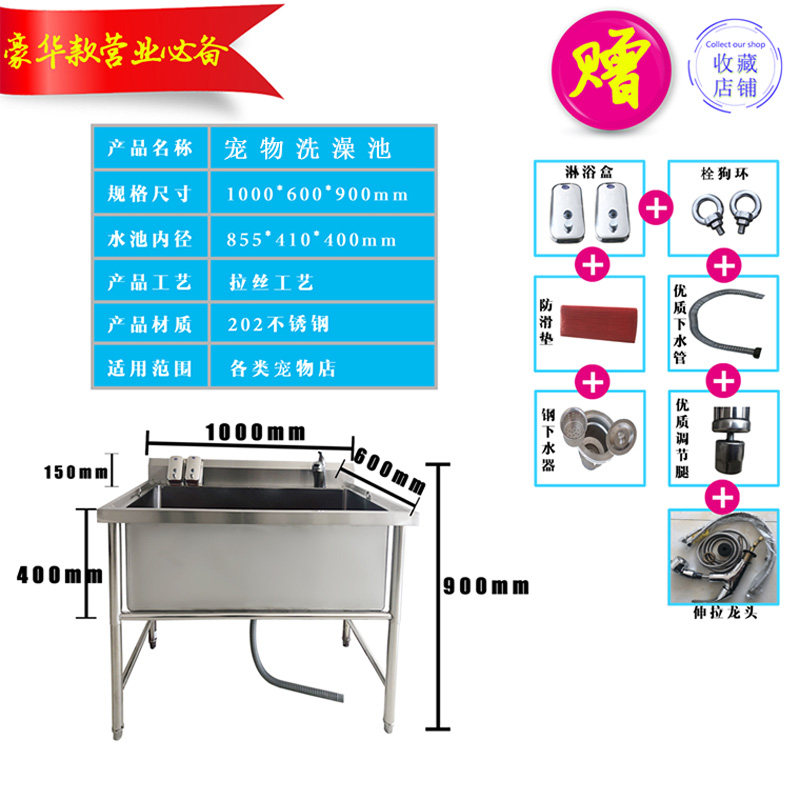 Stainless Steel Pet Bath Pool Wash Dog Pool Bathing Basin Beauty Pet Shop Open Door Large Dog 304 Bath pool