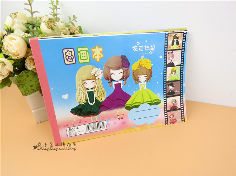 Flower girl cartoon cover 16 open drawings Ben students draw A4 Fine art children's drawings B4 blank inner pages