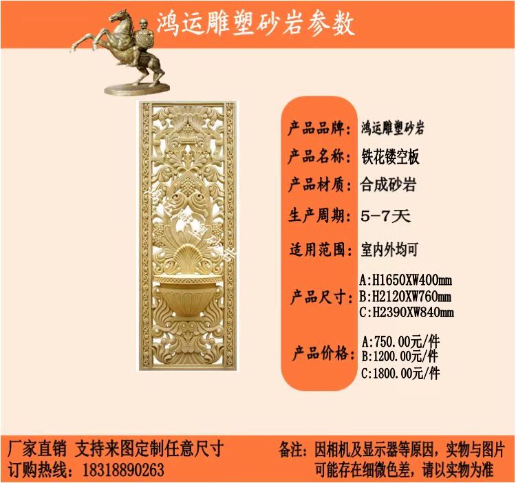 Sandstone embossed iron flower hollow board sandstone glass steel background wall porch home improvement club decoration materials