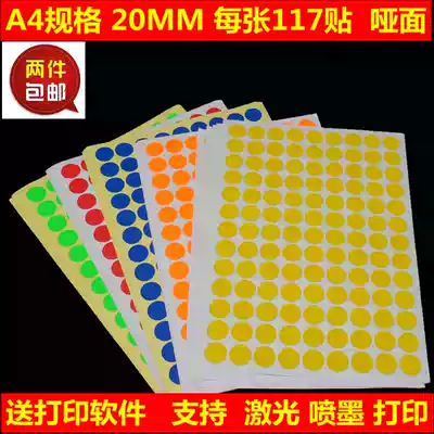 A4 color round self-adhesive label sticker dot label paper 20MM diameter oral take paper digital number sticker
