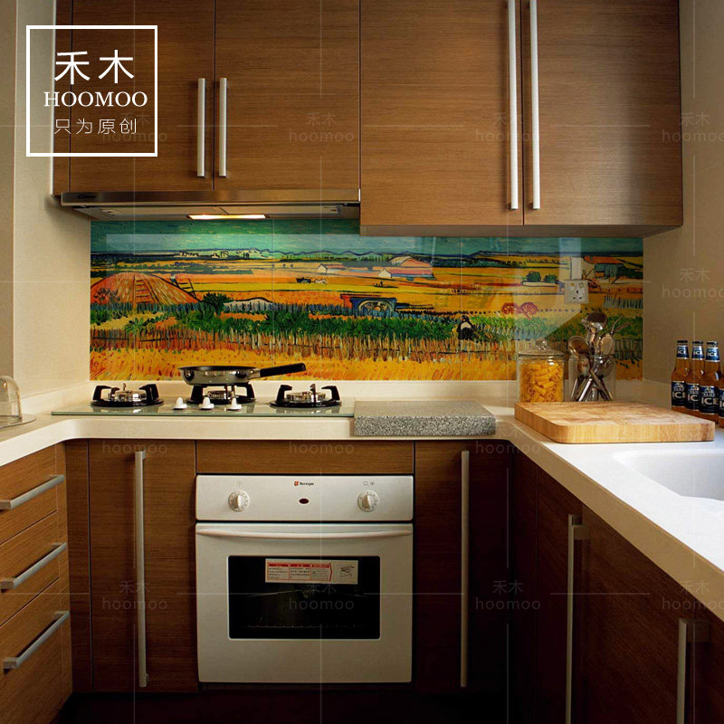 Art tile background wall European style dining room dining room decorative mural abstract personality world famous painting Van Gogh pastoral