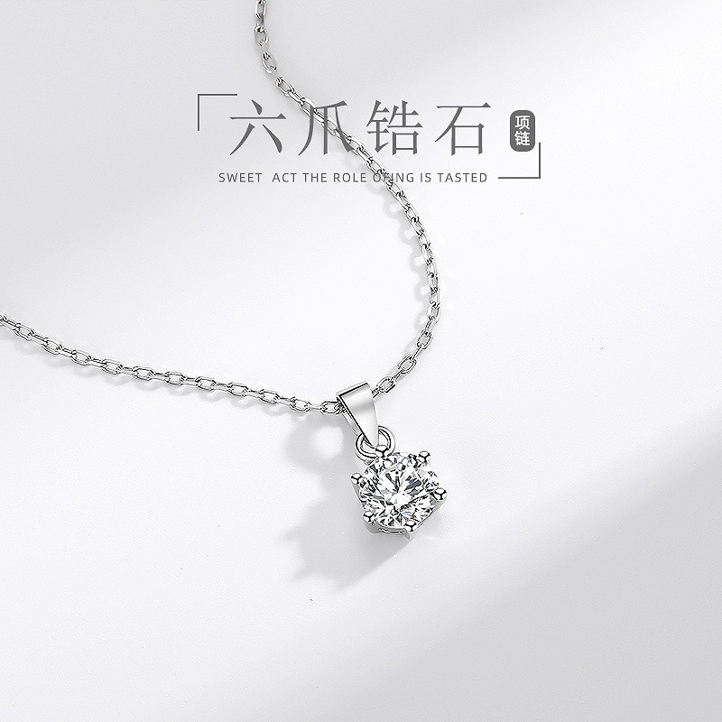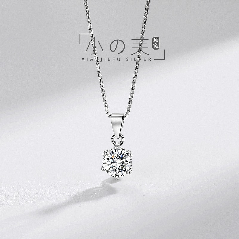 S925 pure silver delicate brief about small pendant single drill necklace small crowdlock bone chain Korean women silver decoration birthday present