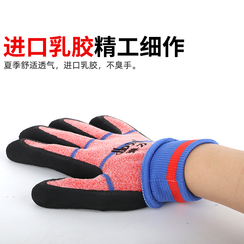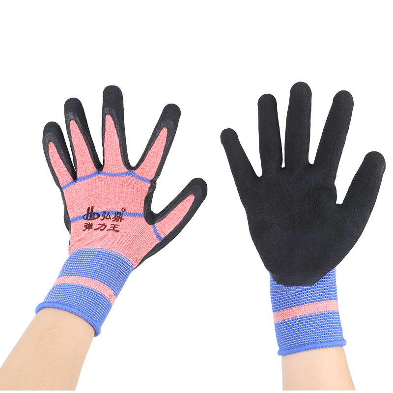 Elastic Hongding brand Ding Qing latex foam gloves hanging glue-soaked gloves summer breathable comfortable wear-resistant labor protection