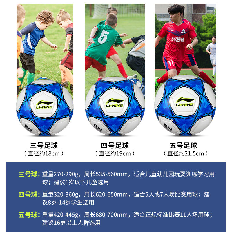 Li Ning football Children's No 3 No 4 football for primary and secondary school students leather sense special competition training No 5 football