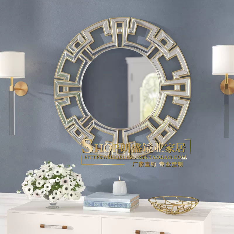 European-style luxury porch round decorative mirror American-style hallway living room sofa background wall mirror Venice makeup mirror