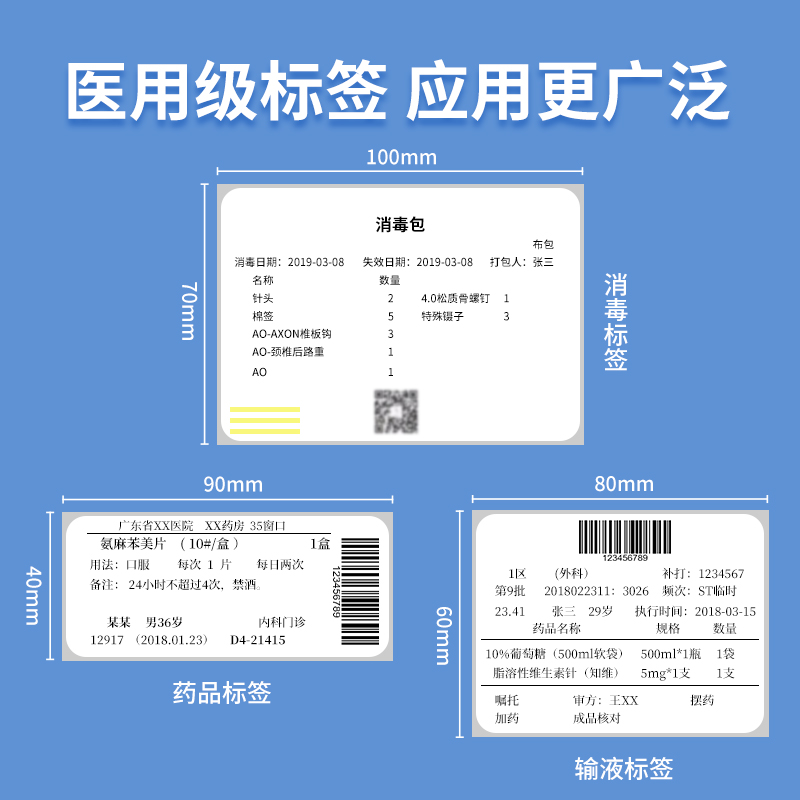 Medical three anti-heat sensitive paper photocopying paper Medical nucleic acid label adhesive anti-alcohol 40x50x30 drug infusion