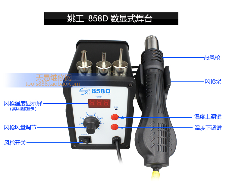 858D hot air gun disassembling BGA welding platform mobile phone computer motherboard chip maintenance welding digital display temperature regulating electric iron
